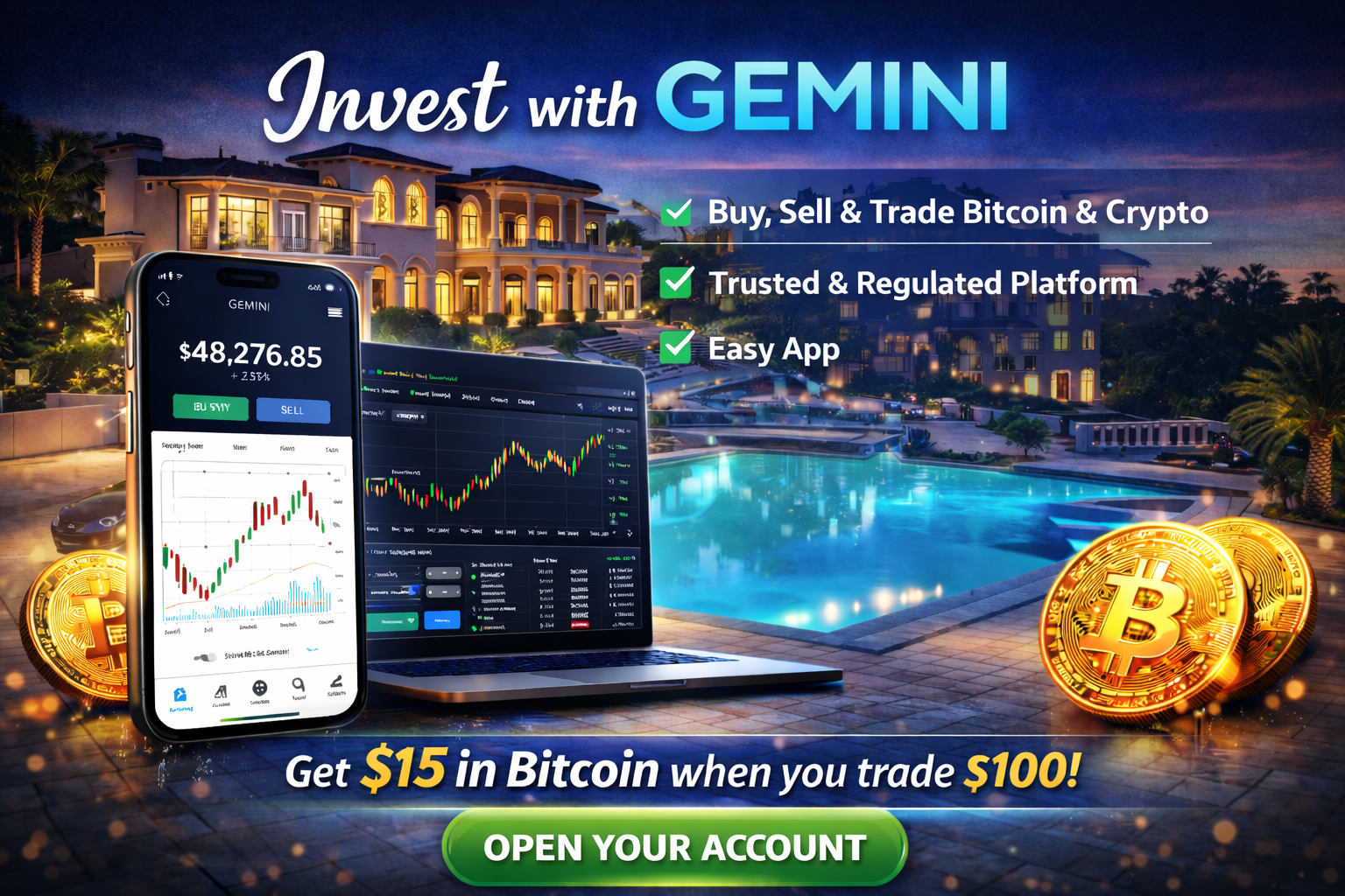 Sign up on Gemini today, claim your $15 BITCOIN bonus, and start trading cryptocurrency on a platform built for security, simplicity, and success.